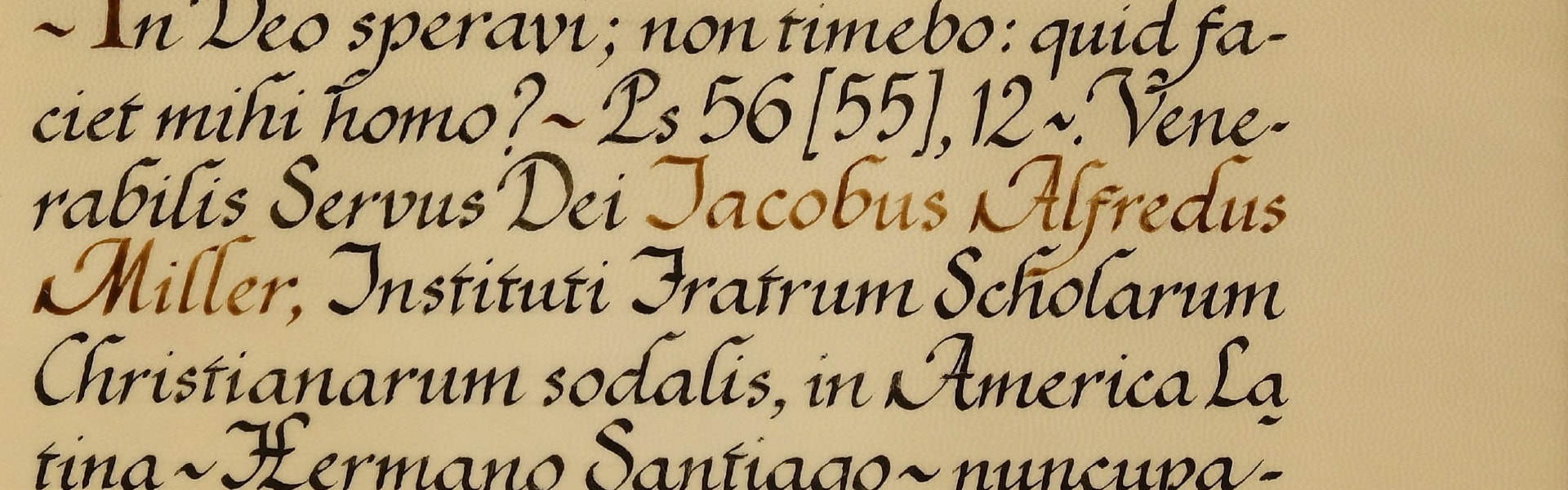 “We permit to be a Venerable Servant of God Jacobus Alfredus Miller, professed religious of the Institute of the Brothers of the Christian Schools, martyr, an excellent educator of young people and evangelical defender of the poor and oppressed, to be called in posterity by the name of Blessed and on the 13th day of February, on which he ascended into heaven may be celebrated each year,” the brief continues.